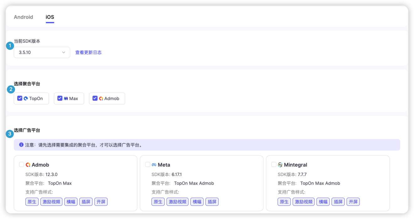 [[MCAPI sharedInstance] setMediationUpdateDelegate:self]; //设置代理