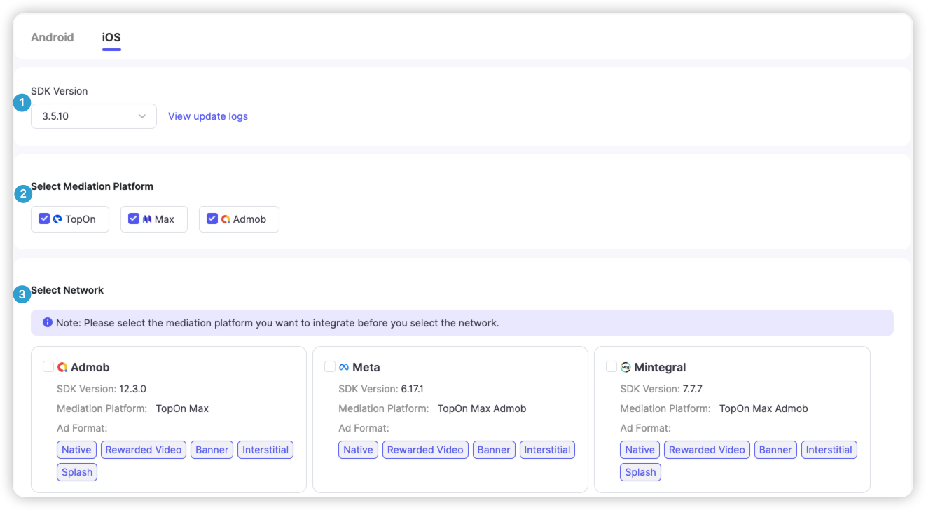 config.appId = kMCSDKConfigInitAppId; //TopOn AppID