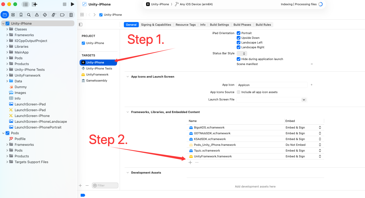 For Unity projects, currently you need to manually adjust the import of certain iOS dynamic libraries. The steps are as follows: