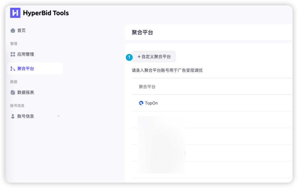 (1) 若您未添加过自定义聚合平台,可点击添加自定义聚合平台入口,添加聚合平台